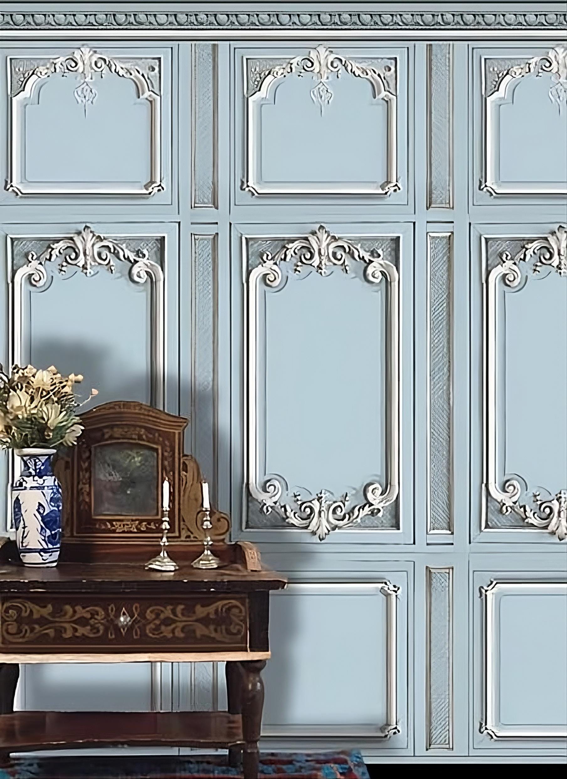 Versailles Blue will not only add instant character with its clever l’oeil moulding but color in the spirit of the palace. Loads of detail. Measurements: 11” x 17” (28cm x 45cm)Http://www.MiniatureRoseGarden.com