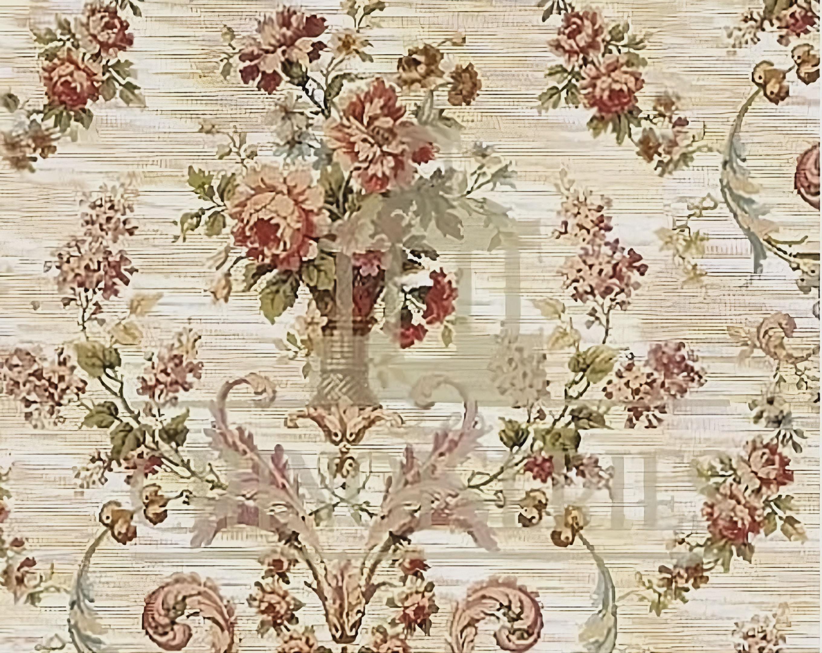 Pretty rose bouquets amid local sprays & graceful scrollwork. Beautiful. Romantic. Feminine.Measurements: 12" x 17" (31cm x 45cm)Http://www.MiniatureRoseGarden.com