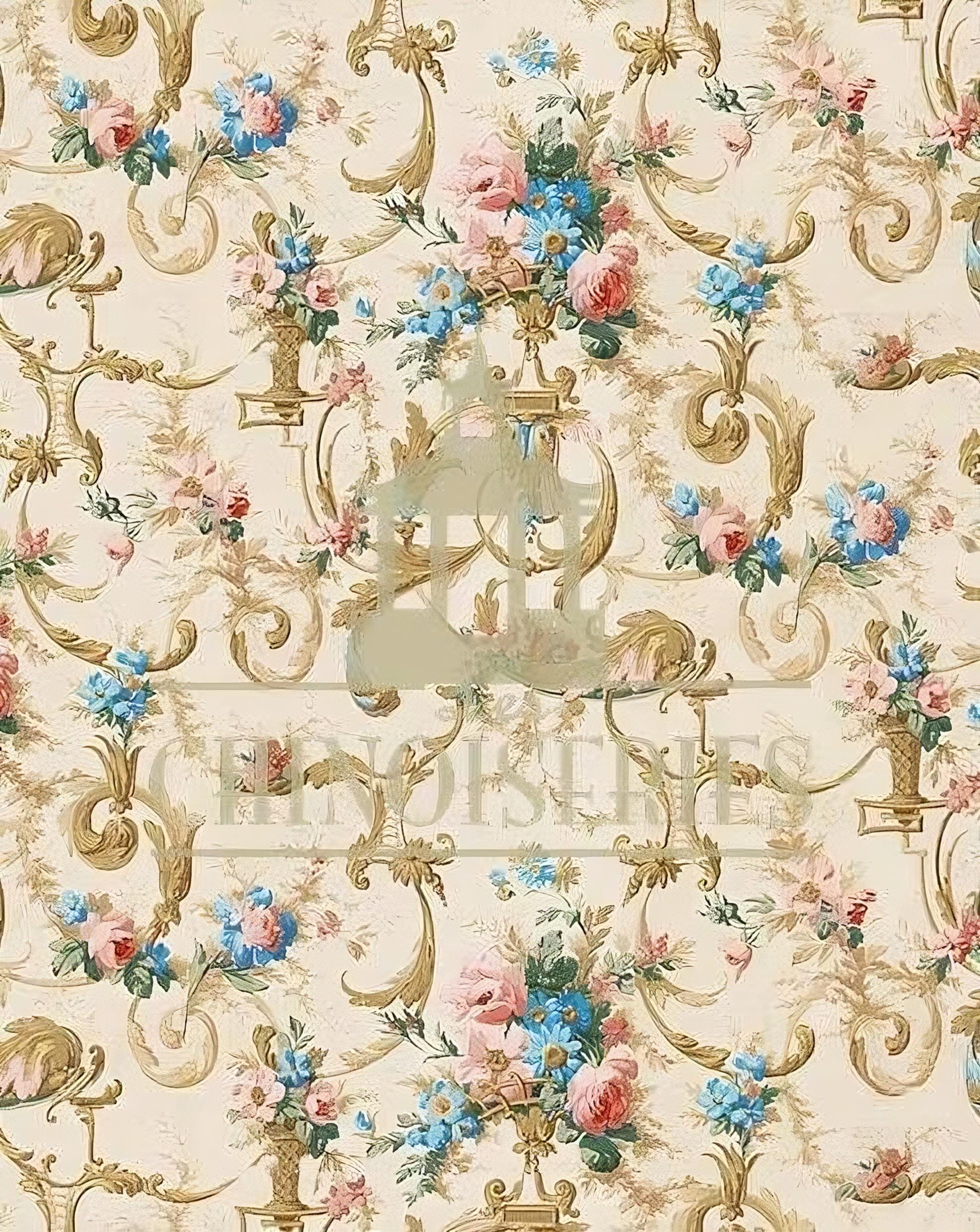 Pretty rose bouquets amid beige scrollwork. Beautiful. Graceful. Romantic. Feminine.Matching fabric is also available here in the shop. Measurements: 12" x 17" (31cm x 45cm)Http://www.MiniatureRoseGarden.com