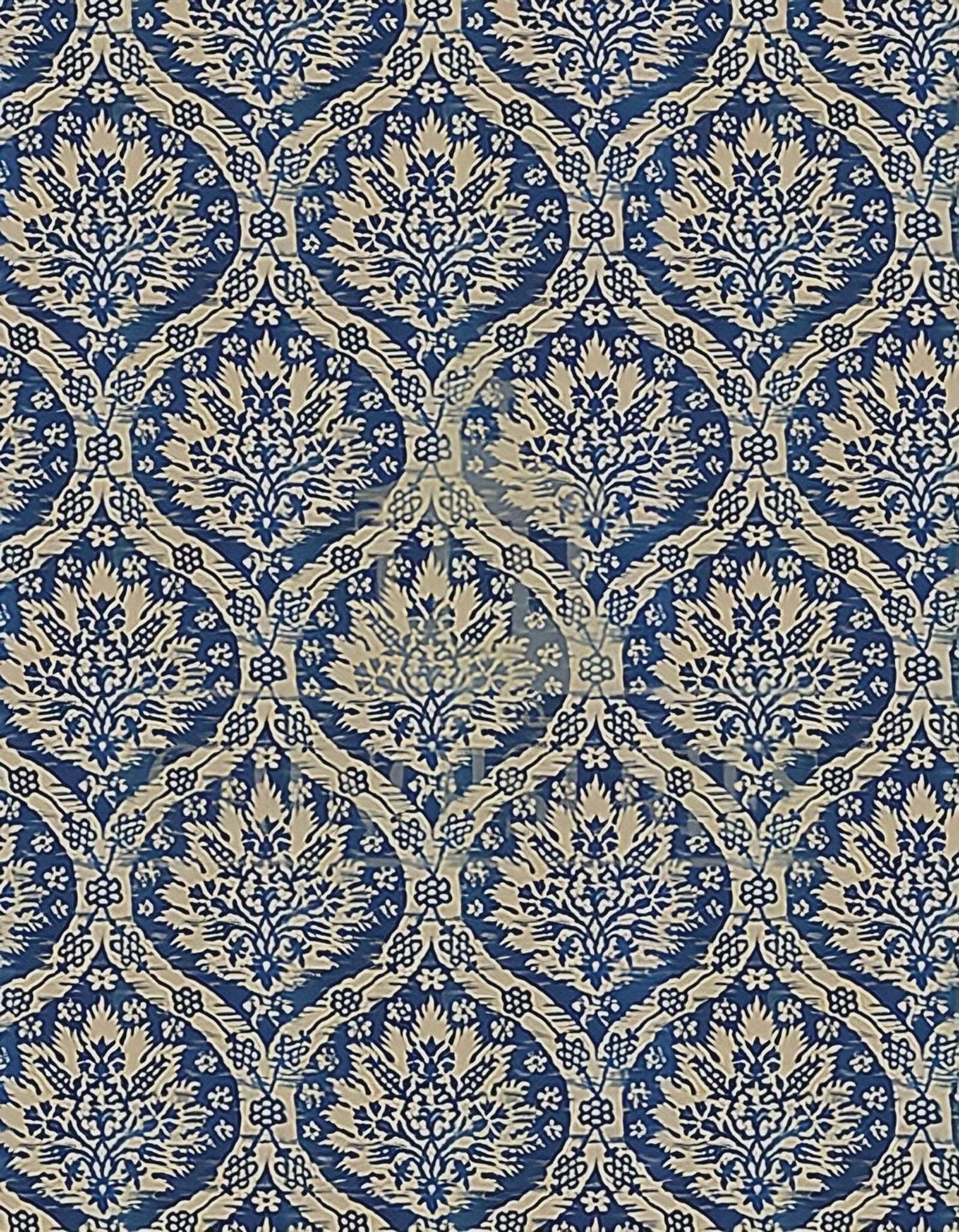 Navy Damask. Classic botanical pattern. France 1840 - 1900. Measurement: 11.5” x 17.5” (31cm x 45cm)Matching fabric is also available here in the shop. Http://www.MiniatureRoseGarden.com