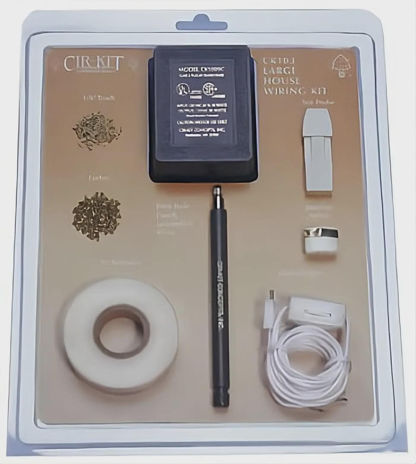 CirKit - the industry leader. . . all of the highest quality components to electrify your dollhouse are included and provided in ample quantities . . . extra tape wire, eyelets and brads . . . more than enough to wire a 10 to 12 room dollhouse.