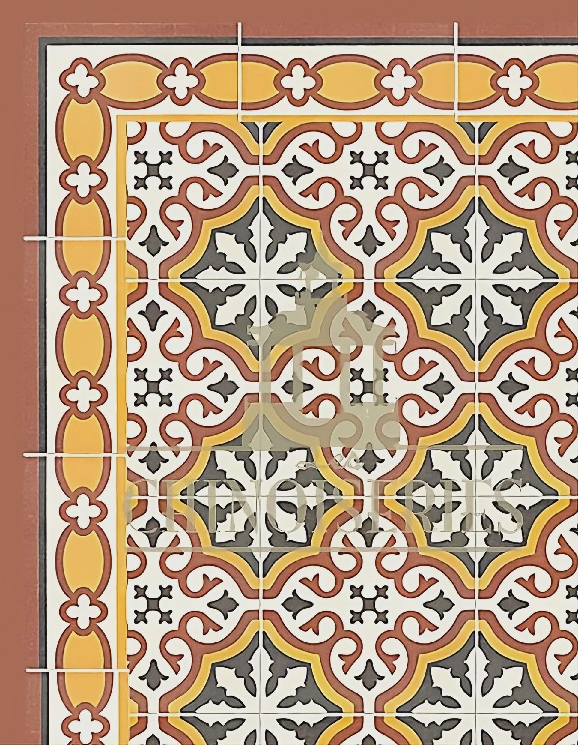 The warm look of Spanish tile in an easy to install wallpaper/floor paper.