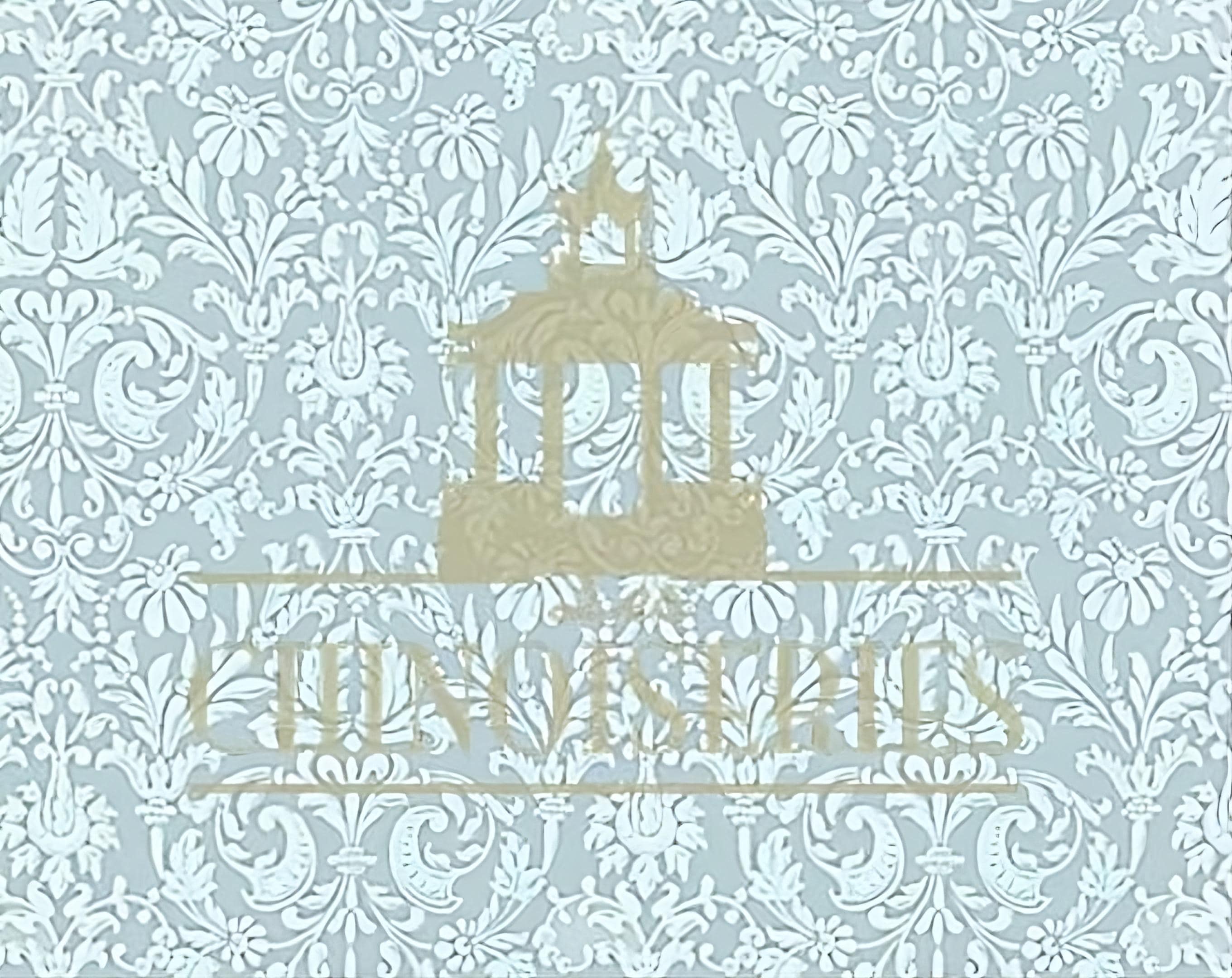 Classic & beautiful. Gentle blue lacy damask pattern on a soft ivory background. Measures: 11.5” x 17.5” (30cm x 45cm)For best selection visit Http://www.MiniatureRoseGarden.com