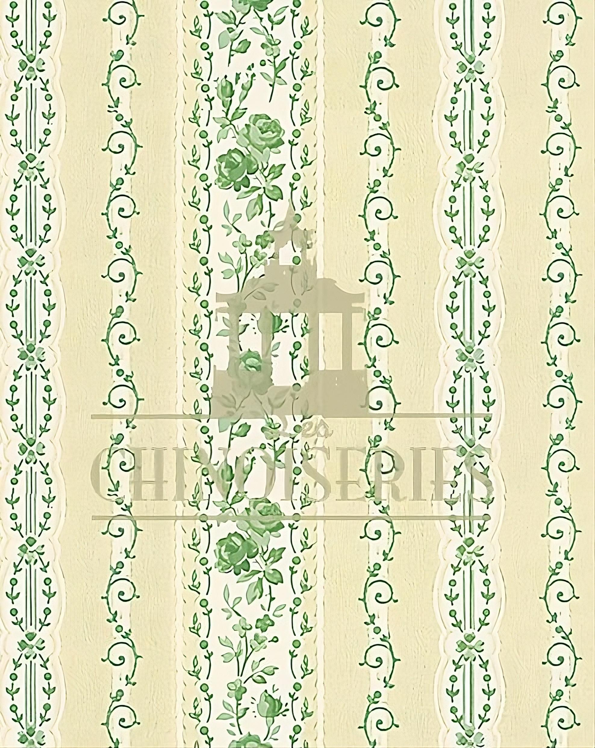 Yellow stripes are the color of Pinot Grigio with ivory stripes of green roses.