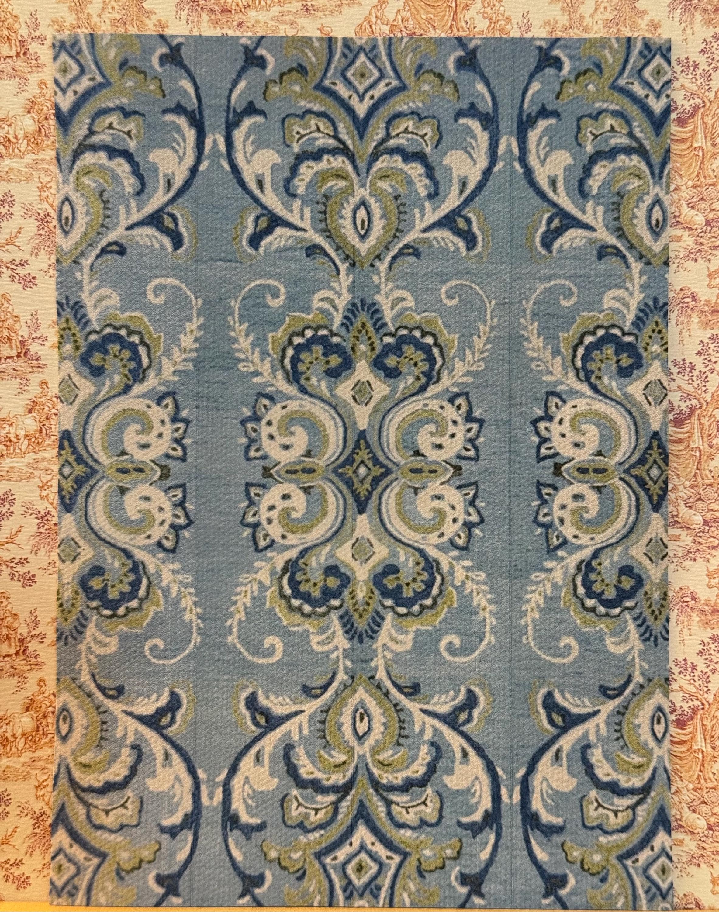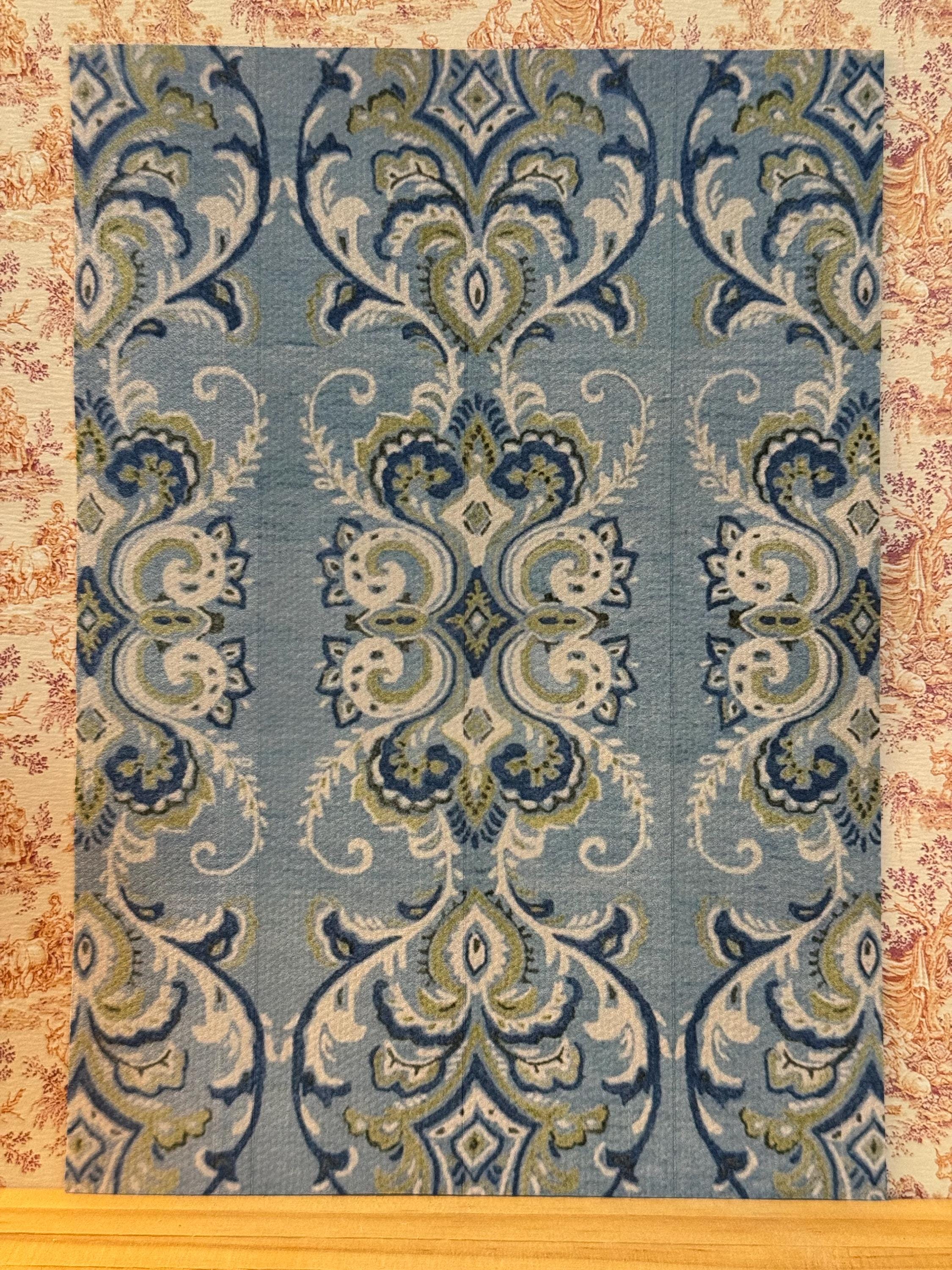 A twist on tradition … Aqua blue paisley.. a modern classic. Measures: 5” x 7” (12.5cm x 17.8 cm)Http://www.MiniatureRoseGarden.com