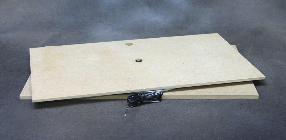 The Electrified and Assembled Turntable Base features a 12 inch steel ball bearing turntable with 3/8 inch MDF Base and 1/4 inch MDF Top.