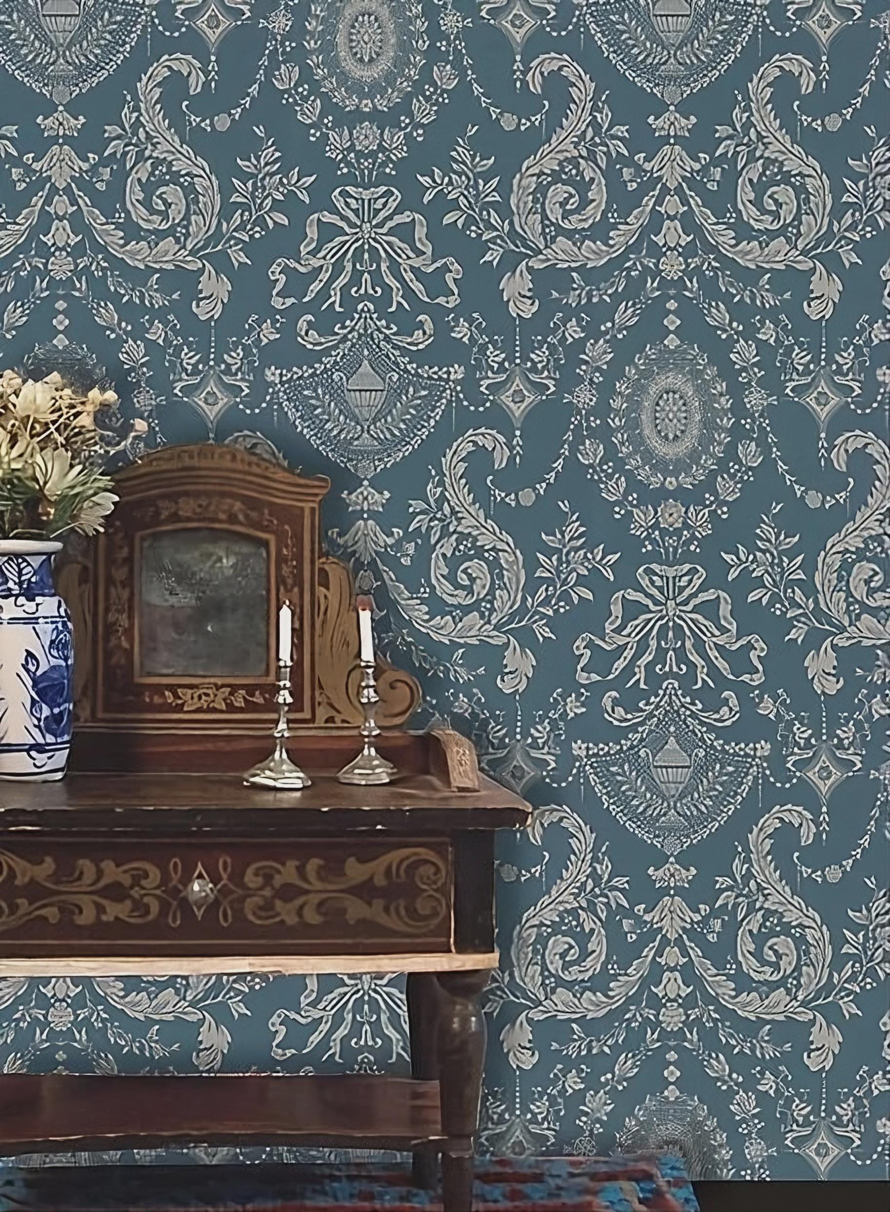 Damask. Classic botanical pattern. France 1840 - 1900. Measurement: 12" x 17.7" (31cm x 45cm)Matching fabric is also available here in the shop. Http://www.MiniatureRoseGarden.com