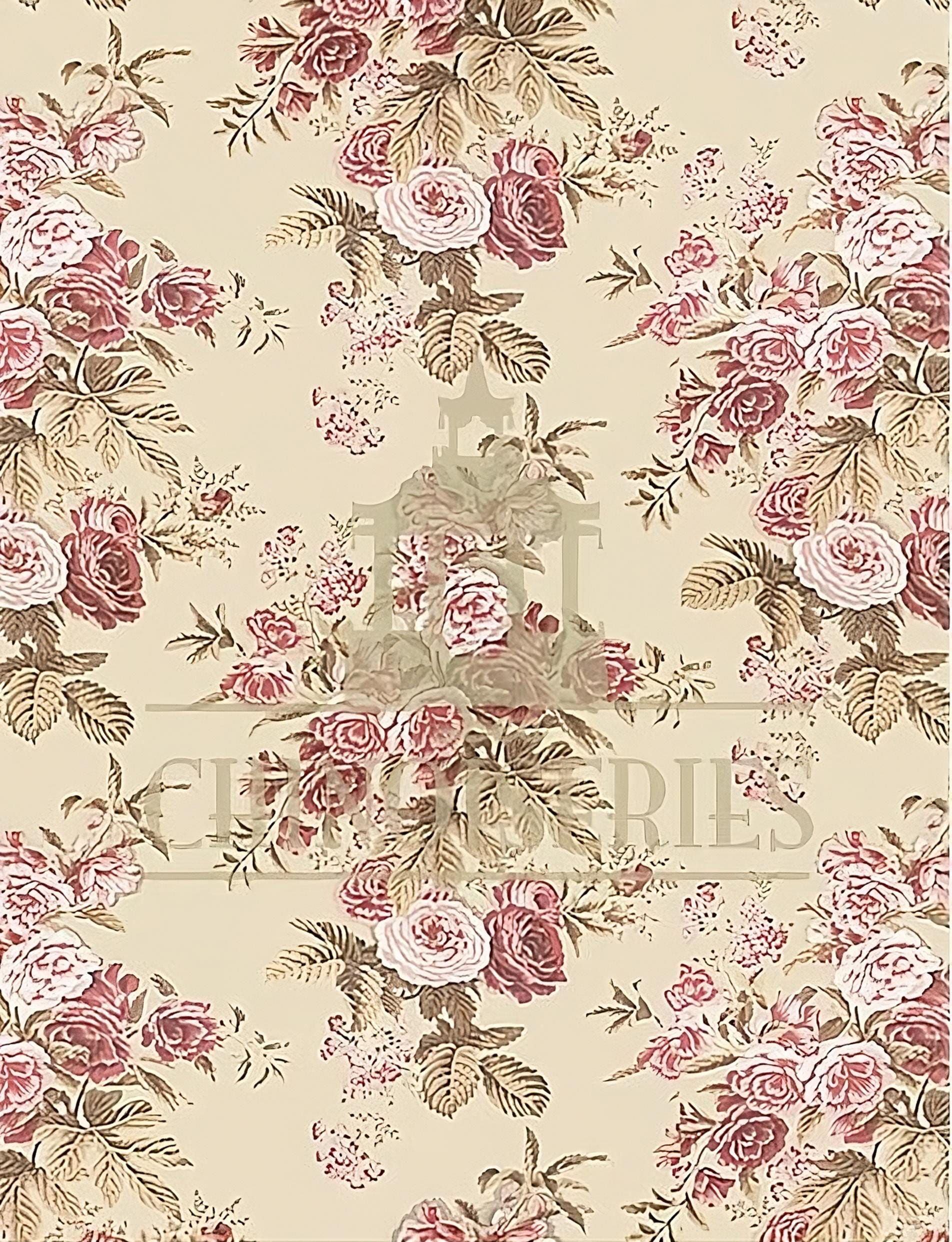 Romantic. Charming. Vintage. Elegant. Feminine. Cream background. Measurements: 12" x 17" (31cm x 45cm)Matching fabric is also available here in the shop. Http://www.MiniatureRoseGarden.com