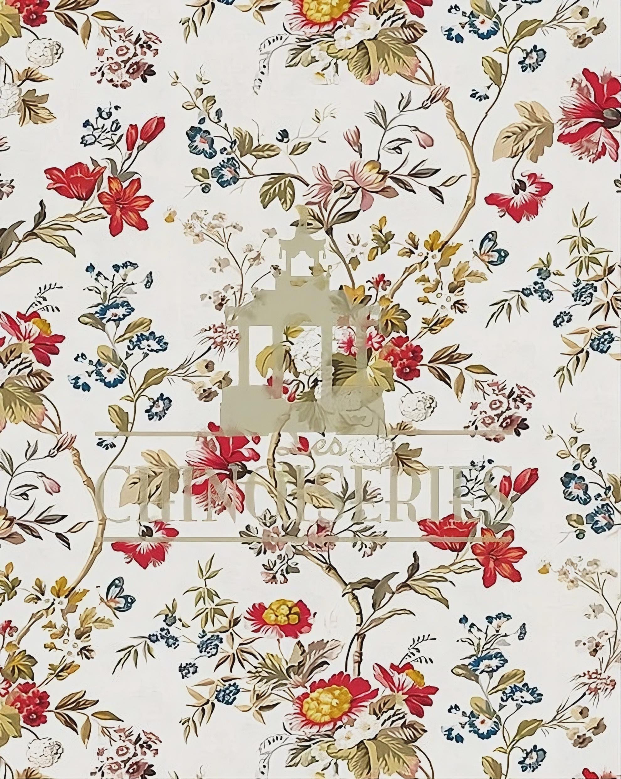 France XVIII Century. Gorgeous. Romantic. Fresh and exotic. Salon pleases the eye with its sense of symmetry.Equidistant Spring Green Vines of Passionate Asian Lilies. Blue Morning Glory. Dianthus. Magnolia. On a white background.