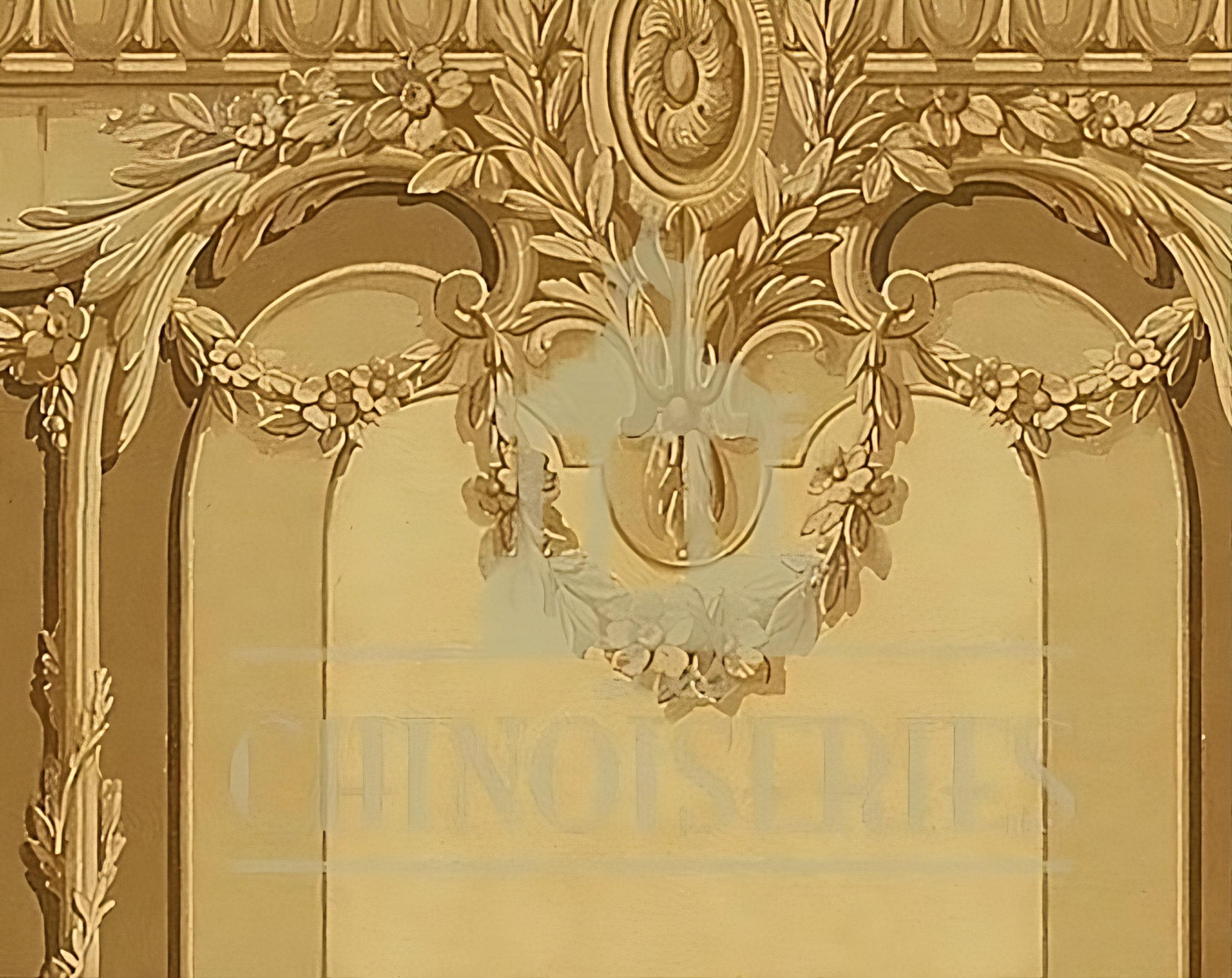 Trompe L’oeil. Bonaparte Wallpaper, the look of rich wood panels with detailed “moulding” in a subtle wheat design, crowned with egg & dart. Many shades of brown . . . hazelnut, toast, caramel, Golden, chocolate. . .