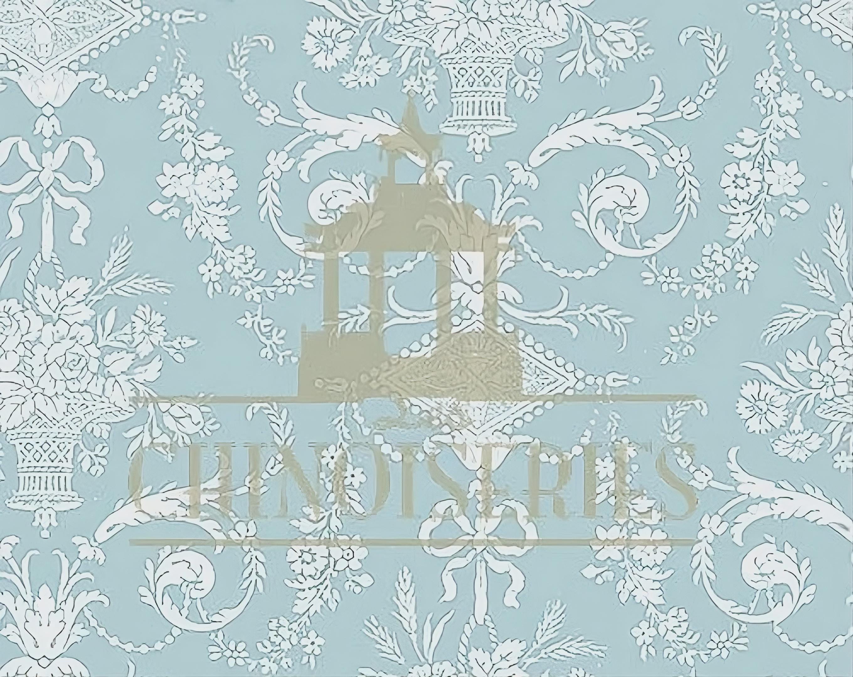 Romantic but subtle because of the classic colors, Wedgwood has baskets of flowers connected by flourishes and bows.