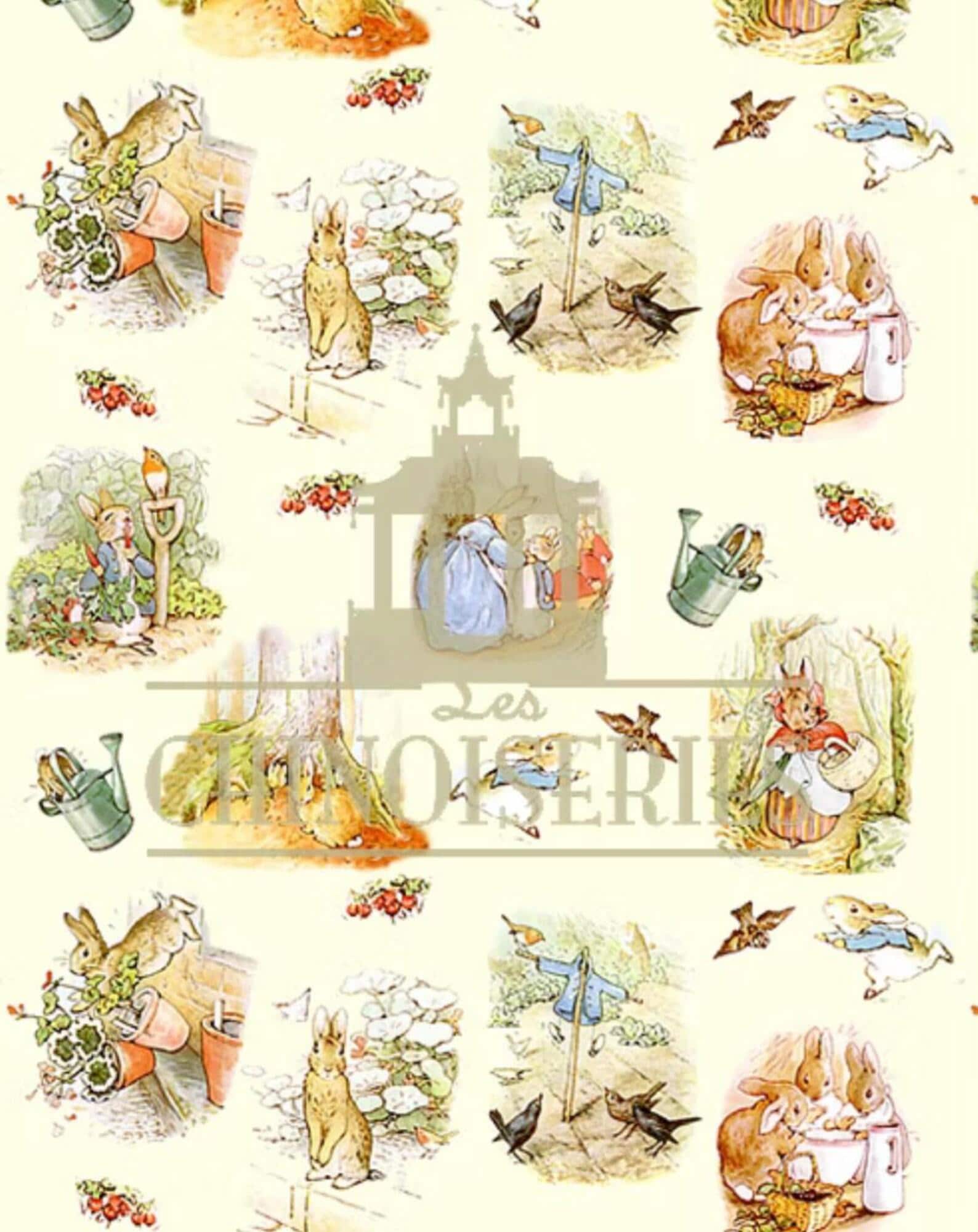 Peter Rabbit is a sweet wallpaper . . . Perfect for a nursery. Cream background. Matching fabric & bedding kits are also available here in the shop. Measures: 12” x 17” (30cm x 45cm)Http://www.MiniatureRoseGarden.com