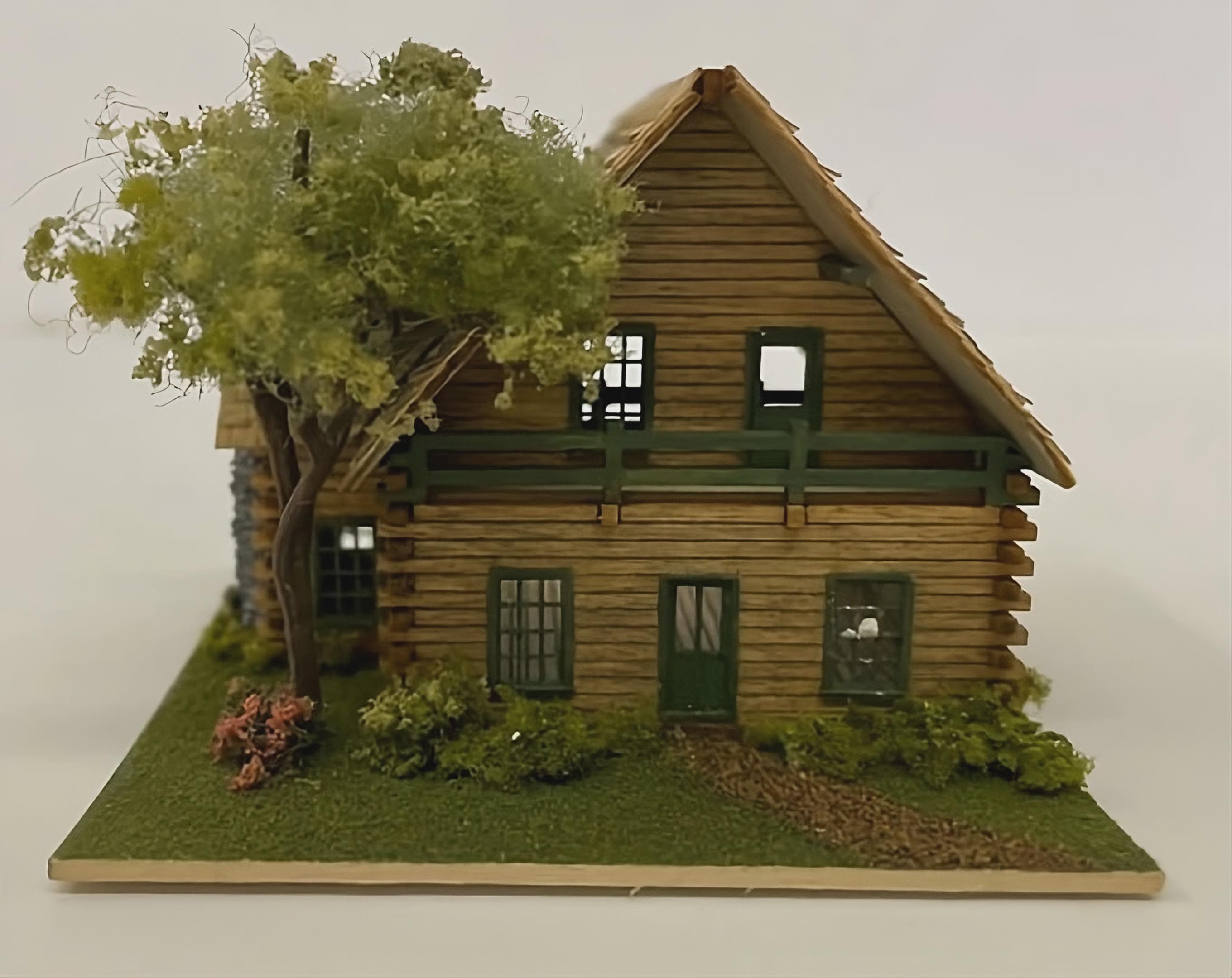1:144 scale log cabin dollhouse kit made of 1/16” solid basswood. Precision laser cut.