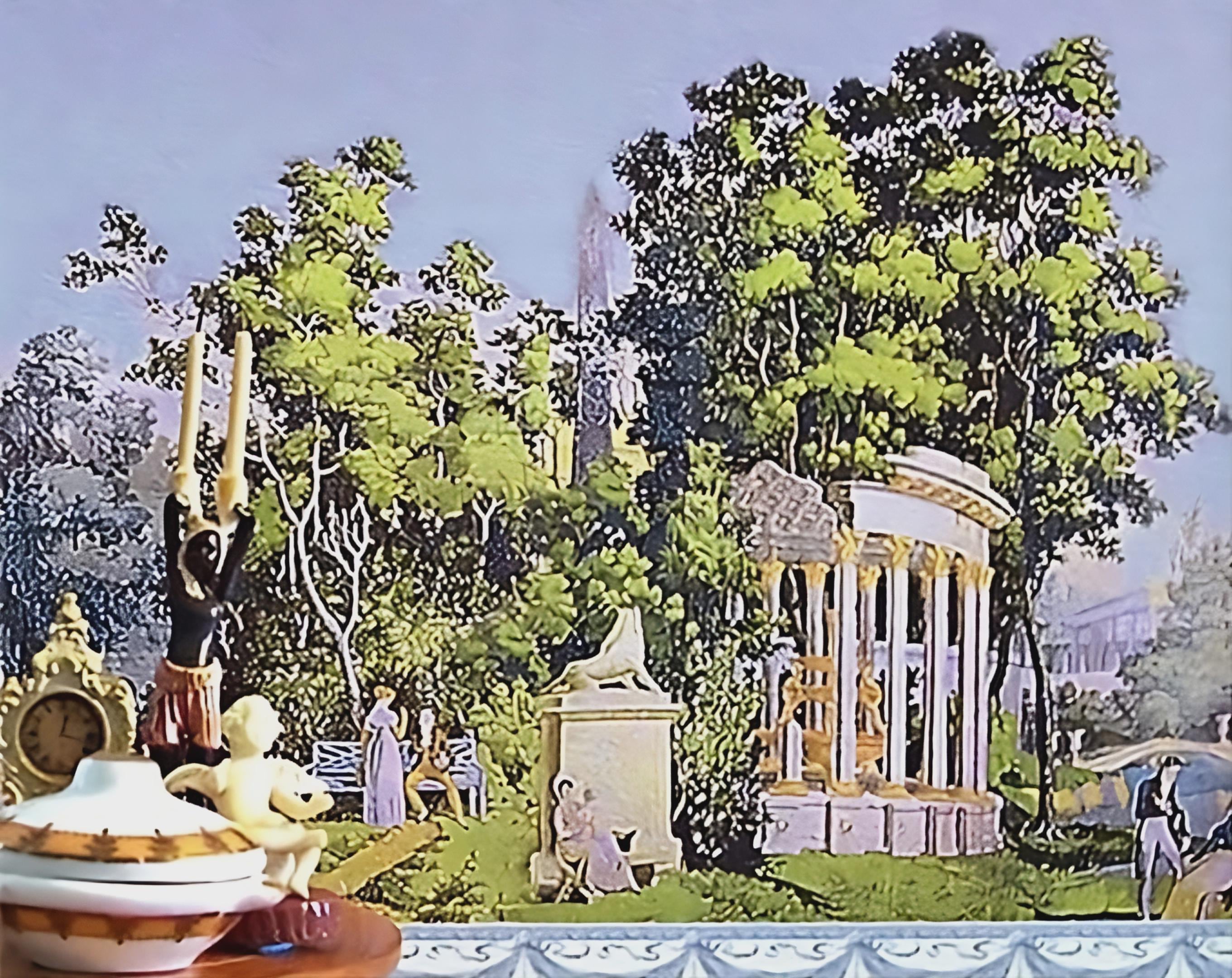 Frieze is a fine blue stripe. Border is an elegant swag. Both of these features match the Companion paper shown in 3rd photo & also available here in the shop.