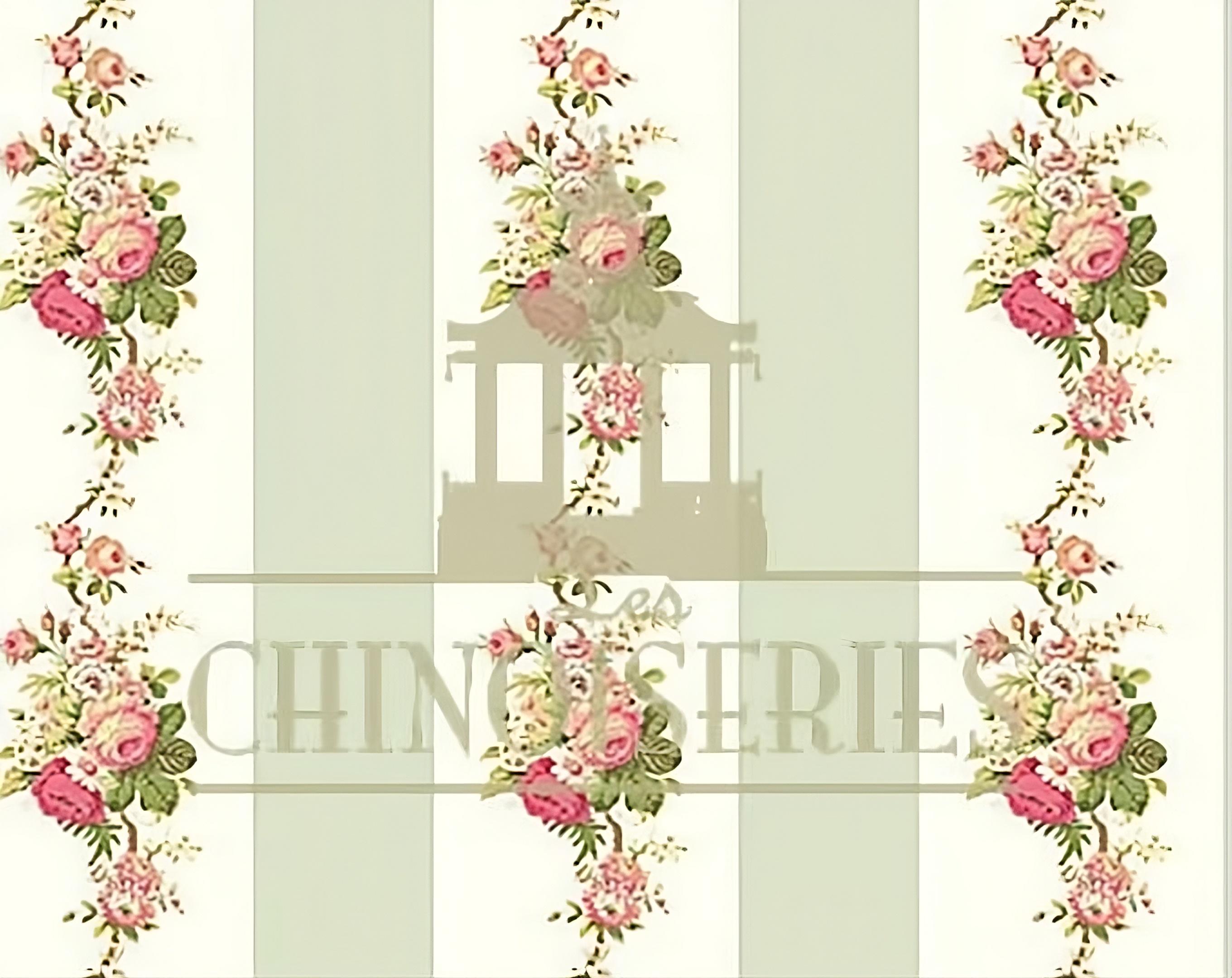 Pastel green stripes with pink rose bouquet garlands. Pretty spring colors.